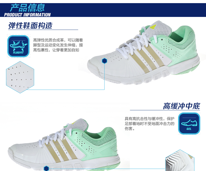 阿迪達斯女鞋adidas女子多功能室內(nèi)羽毛球鞋運動鞋 B22955