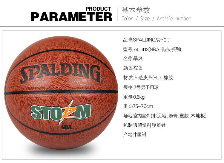 斯伯丁籃球74-413 暴風(fēng)PU材質(zhì)