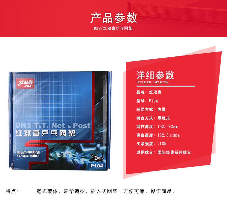 紅雙喜(DHS) P104比賽用乒乓球網(wǎng)架