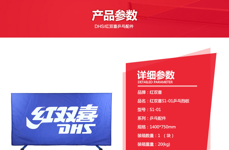 紅雙喜(DHS) S1-01乒乓擋板(牛津布有l(wèi)ogo)