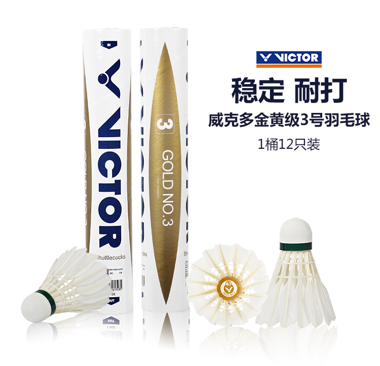 威克多VICTOR 勝利金黃3號(hào)羽毛球 訓(xùn)練比賽用球 穩(wěn)定耐打 12只裝
