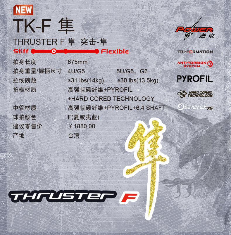 VICTOR威克多羽毛球拍單拍全碳素專業(yè)比賽精準(zhǔn)進(jìn)攻型突擊TK-F隼