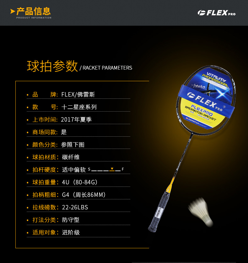 佛雷斯FLEX羽毛球拍全碳素超輕耐用進(jìn)攻型成人男女十二星座單雙拍
