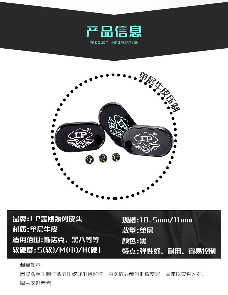 LP魔力金剛皮頭臺(tái)球桿皮頭斯諾克桌球桿槍頭黑八桿頭10mm臺(tái)球用品